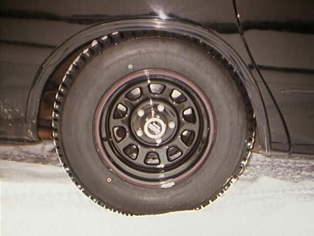 - GET THOSE WHEELS AND TIRES OFF YOUR CAR!! Sorry to yell, but as cool as they are, they just plain suck in the snow. One word: Blizzaks. Your car is worth it. I bought some aftermarket wheels for the winter that look like Winston Cup wheels and I really like the look of them (for steel wheels). There is a picture of one on the car here. Get an alignment-those tires are a soft compound and will wear out pretty fast. The 225/70-15 is nearly the same size, but the wheels are just enough different size and offset that the actual pressure center is different than the stockers. Not only that, these have a much softer sidewall and respond very differently to the suspension loads. It's a good idea to get your front end aligned every 15k-20k anyway, so why not a couple of times a year. It's only 35 bucks.